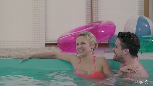Pretty Czech Bianca Ferrero gets cum on tits in sensual sex by the pool